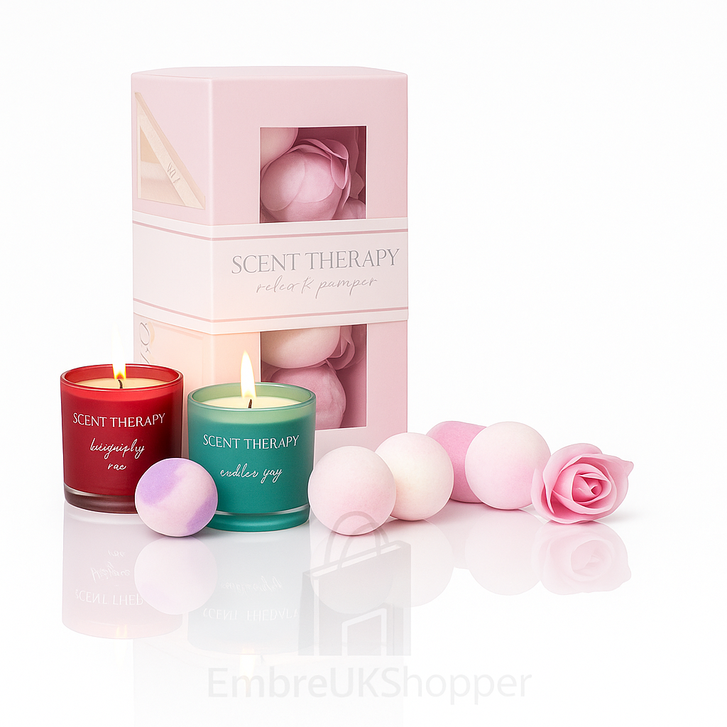ADELEGOURDAIN Scent Therapy Gift Birthday Box for Mum, Friends, Daughter, Women, 18-Piece Aromatherapy Gift Set with Scented Candles, Shower Steamers, Rose Soap Flowers.