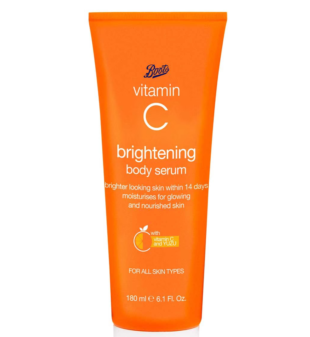 Formulated Boots vitamin C brightening body serum with vitamin C and YUZU extract. This fast absorbing body serum helps moisturise for glowing and nourished skin. Skin looks brighter within 14 days. Suitable for all skin types.